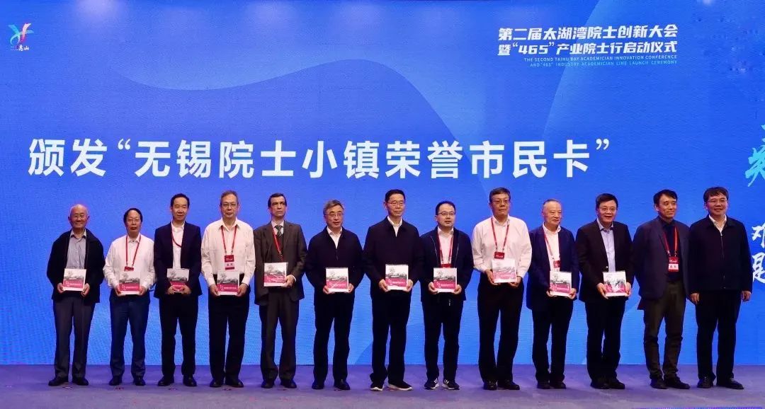 ▲會(huì )上,無(wú)錫院士小鎮鎮長(cháng)丁漢院士為院士頒發(fā)“無(wú)錫院士小鎮榮譽(yù)市民卡”。至此,小鎮“榮譽(yù)市民”已達73名。